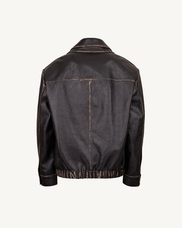 The Yves leather jacket is expertly tailored in Poland by artisans with decades of experience in leather construction. Made from dark brown Italian leather in a rich ristretto tone and finished by hand to evoke the look and character of vintage leather garments. Designed in Switzerland, the jacket features a structured silhouette with a double collar and integrated epaulettes, reflecting a design language rooted in classic style. Inside, it is fully lined with Italian cupro, a silky and breathable fabric derived from cotton. A zippered chest pocket adds function without interrupting the form. The front is fastened with zipper made in Puglia, while the cuffs are completed with dual snap buttons from a respected Italian maker in Bologna. Designed to leave an impression, and destined to age with unmistakable grace.