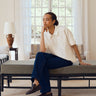 The Corey short-sleeve polo shirt is made from finely knit French terry cotton, developed in Veneto, Italy, by a specialist mill known for its exceptional craftsmanship. The fabric offers a substantial feel with a clean, structured drape that holds its shape beautifully. The relaxed cut is complemented by a soft collar and a classic front opening, creating an easy yet intentional silhouette. It is finished with handmade mother of pearl buttons, natural elements that reflect the elegance of genuine pearls. These buttons are true pieces of jewellery, thoughtfully integrated into the garment.